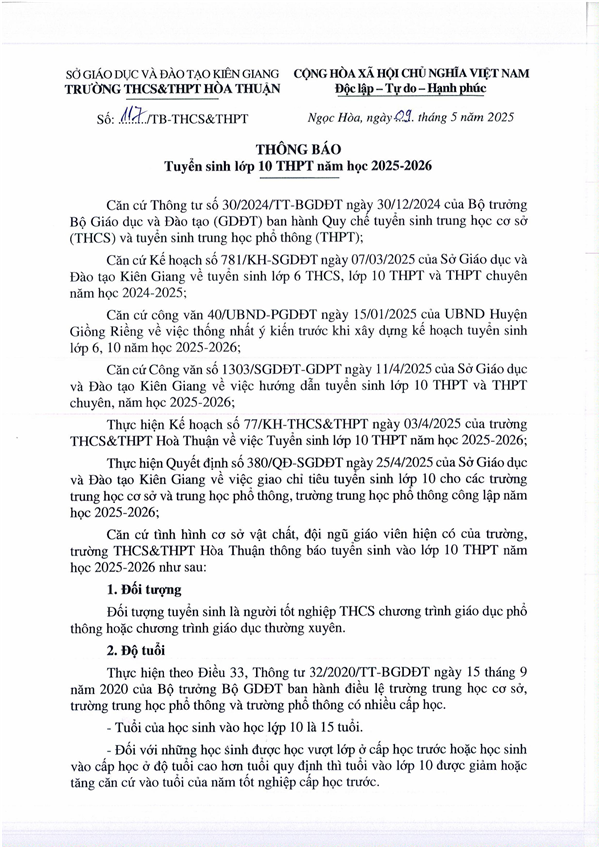 - (16/05/2025 02:42:00 PM) - THÔNG BÁO TUYỂN SINH LỚP 6 NĂM HỌC 2025-2026)